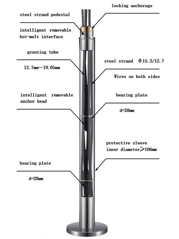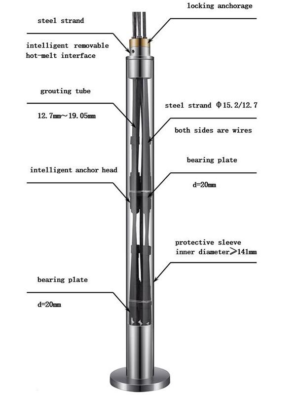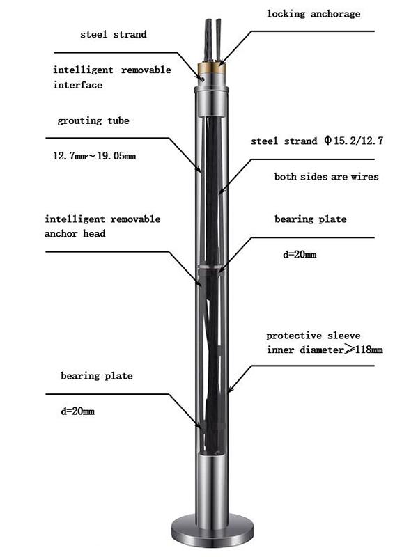 RZI 시리즈 임시 탈착식 스트랜드 앵커는 실시간 내부 힘 측정과 복구 가능 기능을 결합했다. 앵커를 복구하고 실시간 측정을 통해 안전을 보장할 수 있는 대규모 기초 피트 및 경사 프로젝트에 주로 사용된다. 스트레인 게이지는 필러로 감싸는 앵커링 섹션의 끝에 있다. 스트레인 게이지가 장착된 기존의 앵커와 비교하여 스트레인 게이지는 방수 상태에서 보호되며, 이를 통해 지능형 앵커가 내구성을 높이고 힘 측정에 있어 탁월한 정확도를 가질 수 있다. 회복 가능한 특성은 토양의 남아 있는 힘줄 잔여물의 문제를 효과적으로 해결한다. 전통적으로, 힘줄은 토양층에 남아있으며, 이것은 물질적인 낭비와 토양 오염을 초래하고, 토양에 더 많은 장애물을 만들어 주며, 이로 인해 미래의 지하 공간 개발의 어려움을 증가시킨다. 이러한 장애물을 제거하기 위해 더 높은 비용이 사용되어야 한다. 그러나 핫 멜트 탈착식 기술을 사용하면 브레이싱 프로젝트가 완료된 후 모든 힘줄을 제거하거나 복구할 수 있다.
